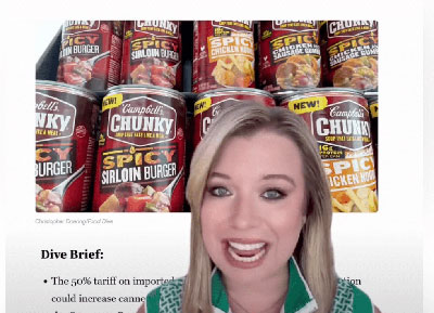 The Trump administration’s new 50% duty on imported steel could increase store prices for items in steel cans by 9% to 15%, according to the Consumer Brands Association...